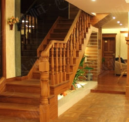 柚木,原產(chǎn)于東南亞地區(qū),是一種硬度高、耐腐蝕的天然木材。其木質(zhì)緊密,紋理清晰,色澤溫暖,從淺黃到深褐色不等,能夠適應(yīng)多種家居風(fēng)格。在樓梯設(shè)計中,柚木不僅提供結(jié)構(gòu)